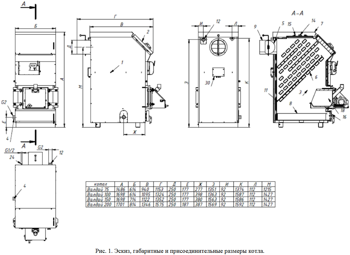 ТЕХНИЧЕСКИЕ ХАРАКТЕРИСТИКИ КОТЛОВ "ВАЛДАЙ 75…200"